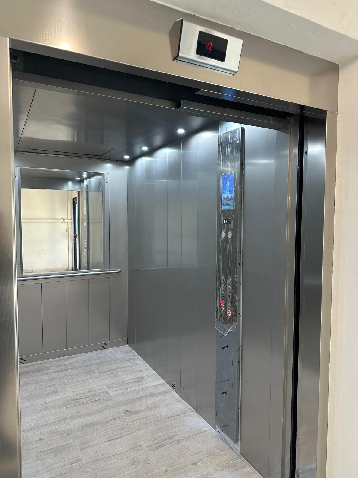 Remplacement complet d’un ascenseur hydraulique 2000 kg par un ascenseur électrique neuf 1600 kg